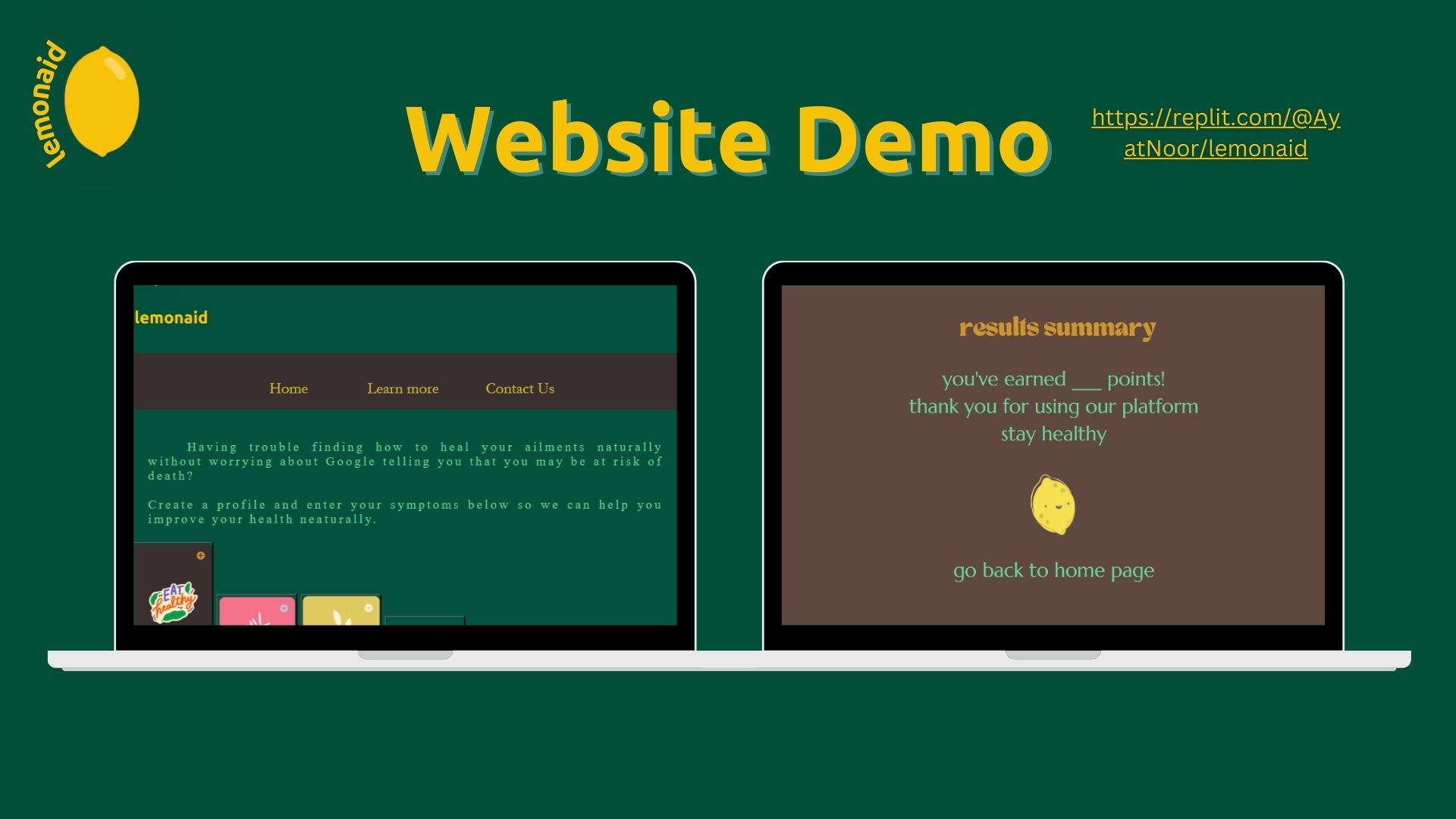 Soon, we'll integrate ChatGPT's API, allowing symptom input and reliable health advice from our up-to-date AI model, which pulls data from credible health databases. Choose Lemonaid, your guide to a healthier, happier you!